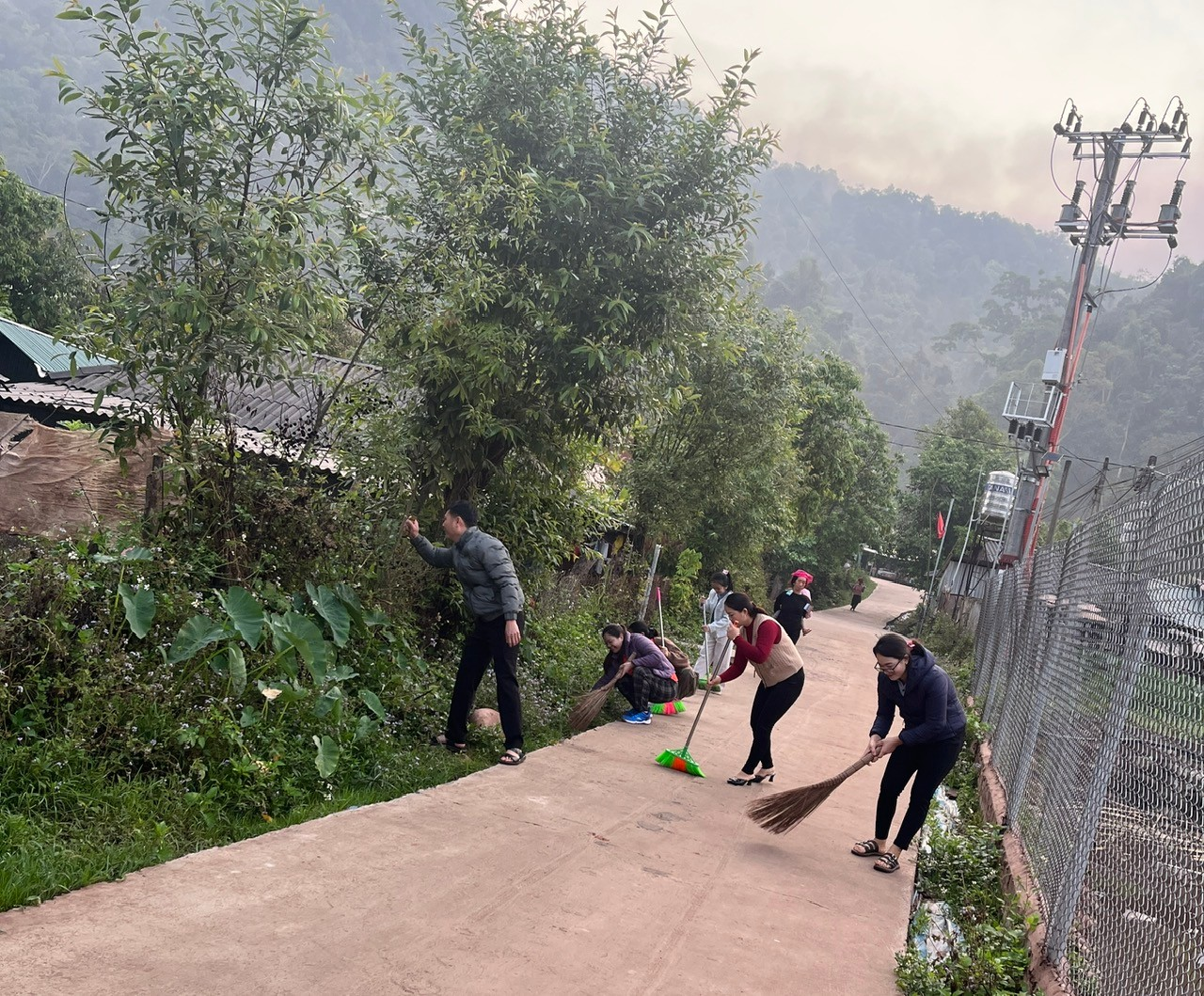 Đoàn thanh niên trường lao động dọn dẹp đường đi thôn bản