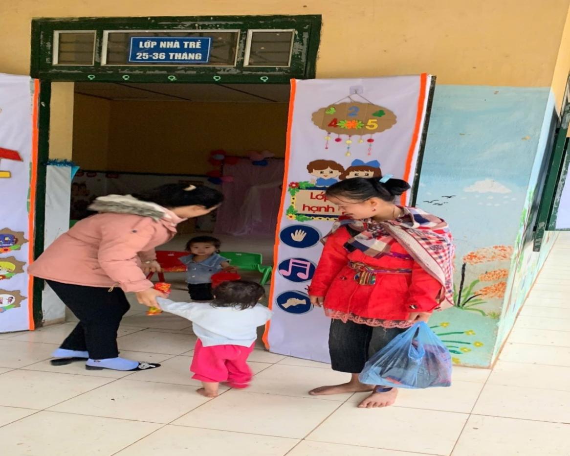 Dưới đây là một số hình ảnh trong hoạt động học tập, vui chơi, rèn nề nếp trong một ngày khi các bé đến nhóm trẻ 25-36 bản Hua Sin mà cô và các con cùng thực hiện