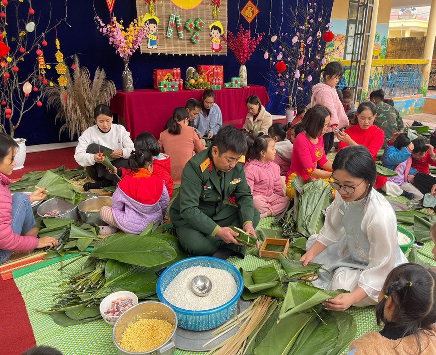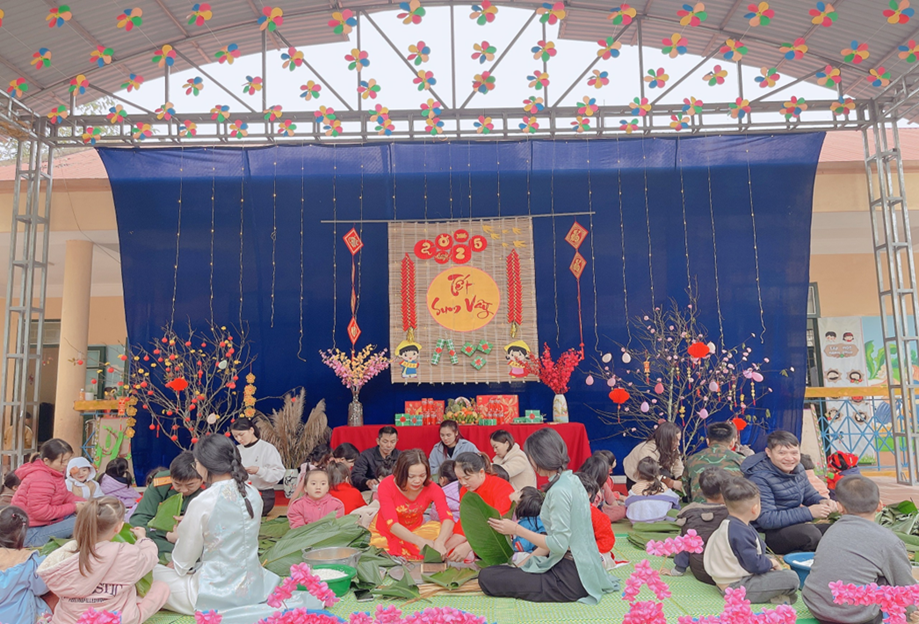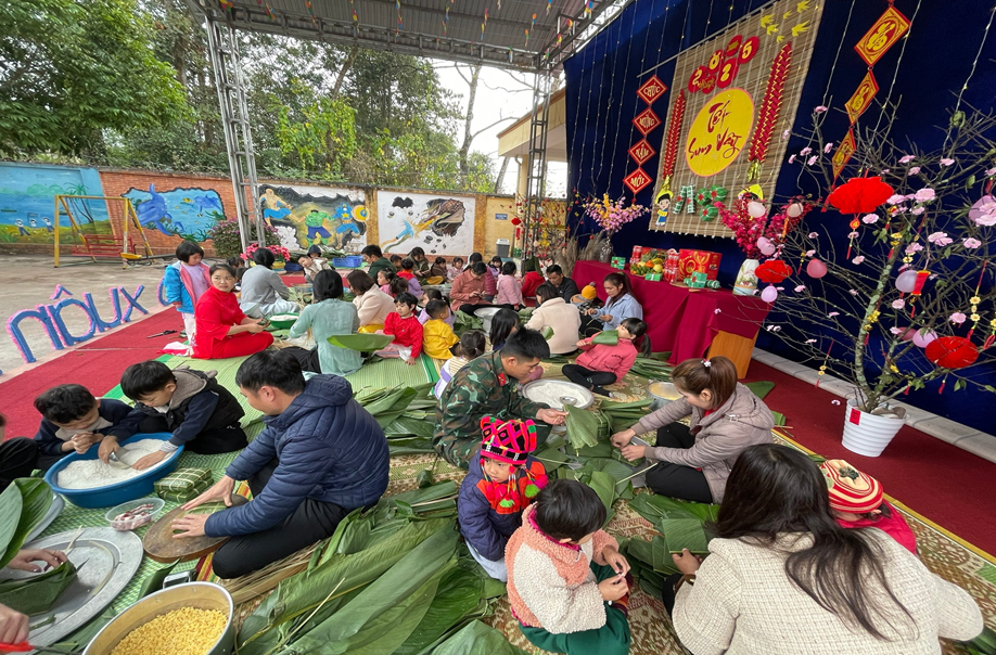 Hoà trong không khí hân hoan chào mừng xuân Ất Tỵ năm 2025. Sáng ngày 20/01/2025, trường Mầm Non Chung Chải phối hợp với các bậc phụ huynh tổ chức hoạt động trải nghiệm cho trẻ gói bánh chưng ngày tết, nhằm giúp cho các cháu tìm hiểu về phong tục, giáo dục nét đẹp văn hoá truyền thống của dân tộc Việt Nam, trẻ hiểu sâu sắc về ý nghĩa bánh chưng ngày tết và được cùng tham gia gói bánh cùng cô.
