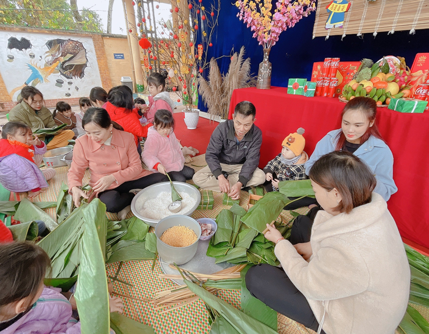 Hoạt động trải nghiệm tổ chức cho trẻ gói bánh chưng nhân dịp tết