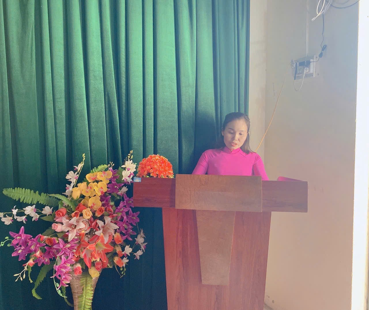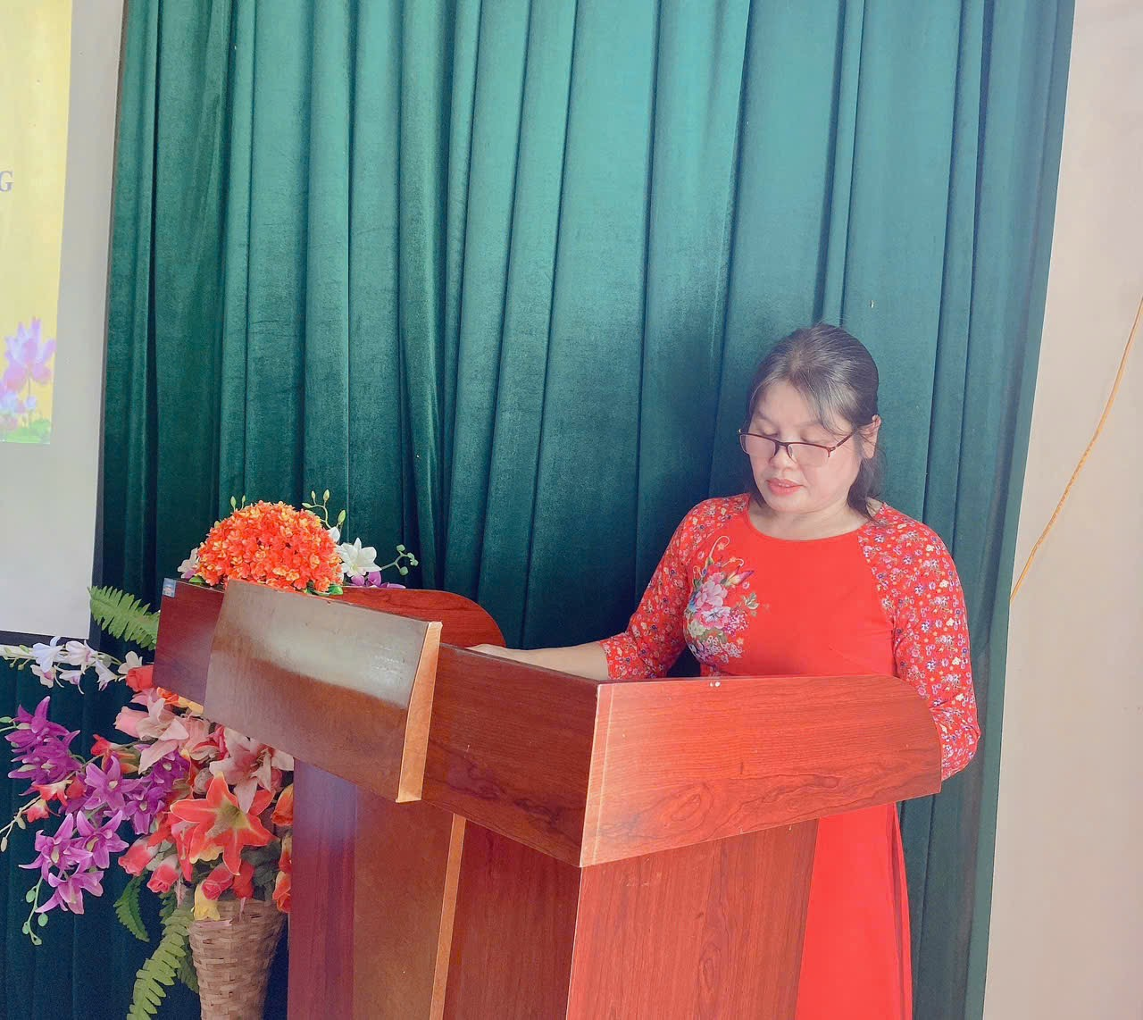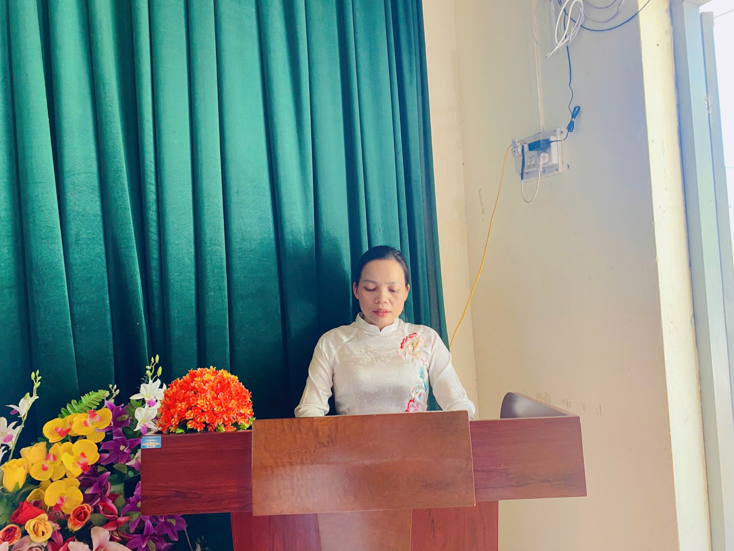 Đ/C Trần Thị Hoa - PHT báo cáo kết quả thực hiện nghị quyết năm học 2024 – 2025 và phương hướng nhiệm vụ, giải pháp năm học 2025- 2026