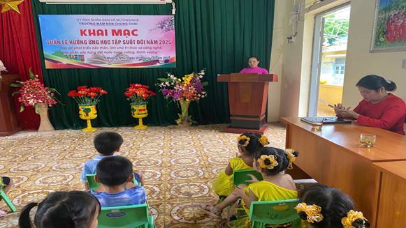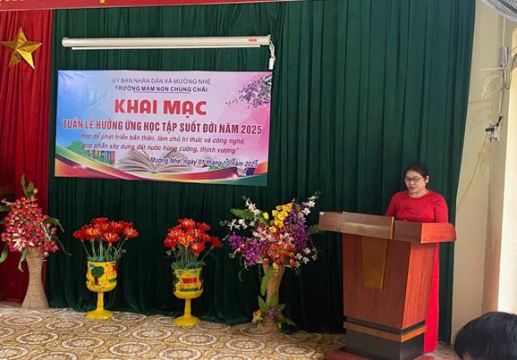 Hưởng ứng tuần lễ, nhà trường phát động nhiều hoạt động phong phú: Xây dựng “góc học tập thân thiện” tại các lớp, tổ chức ngày hội đọc sách, hoạt động trải nghiệm sáng tạo, giao lưu chia sẻ kinh nghiệm giữa giáo viên và phụ huynh… nhằm khơi dậy niềm say mê học tập trong cộng đồng. Khai mạc khép lại trong niềm hân hoan, tin tưởng rằng mỗi cán bộ, giáo viên, phụ huynh và các em học sinh Trường Mầm non Chung Chải sẽ là những hạt nhân tích cực, cùng chung tay xây dựng xã hội học tập - nơi việc học trở thành niềm vui, thói quen và động lực vươn tới tương lai.